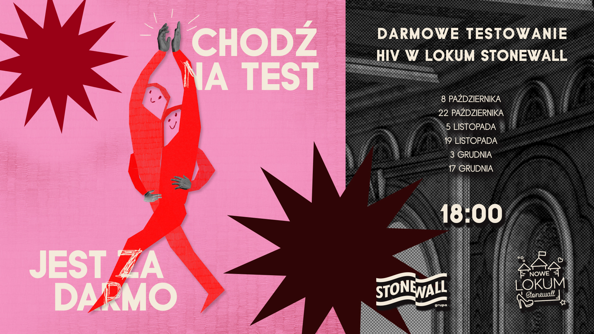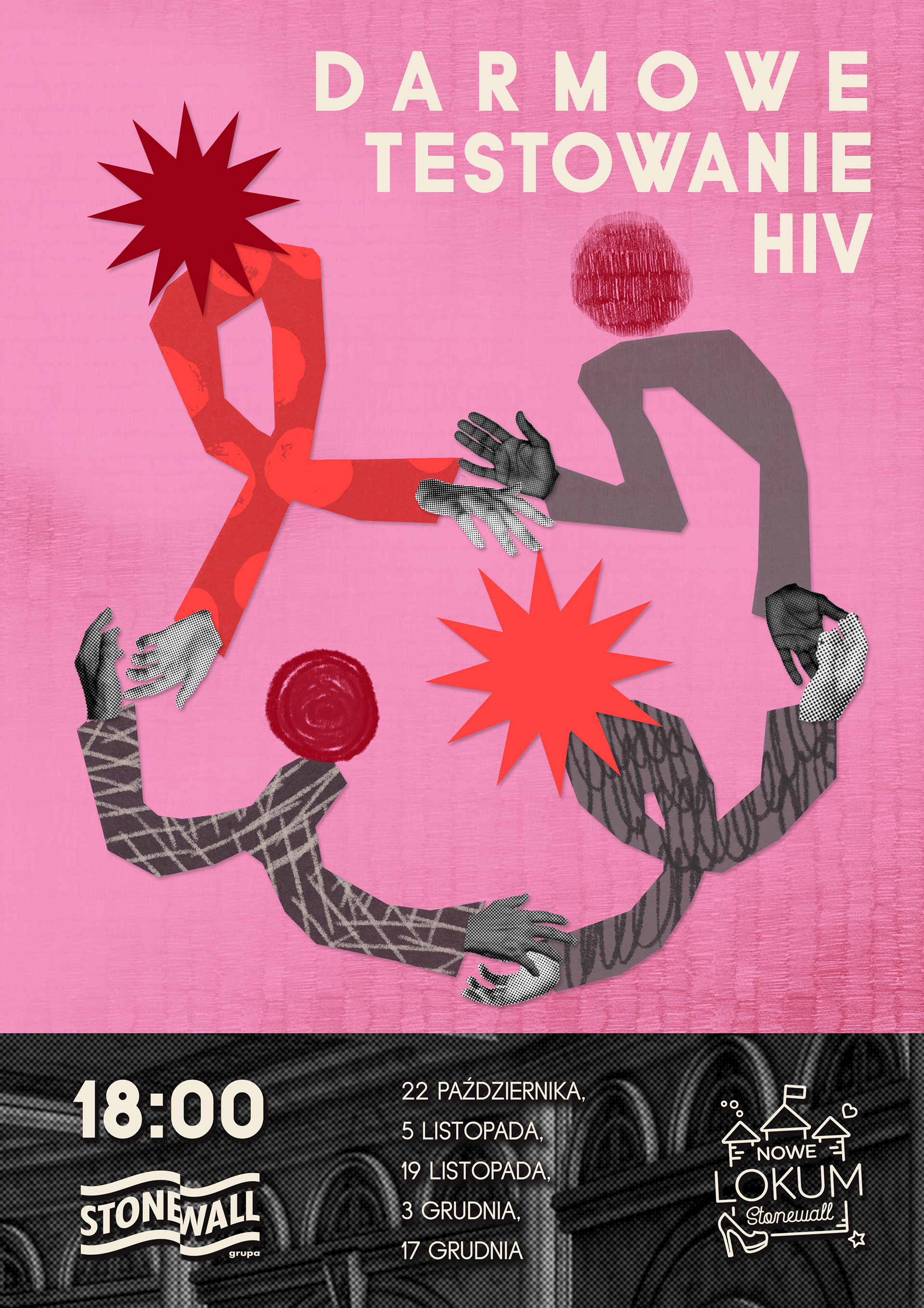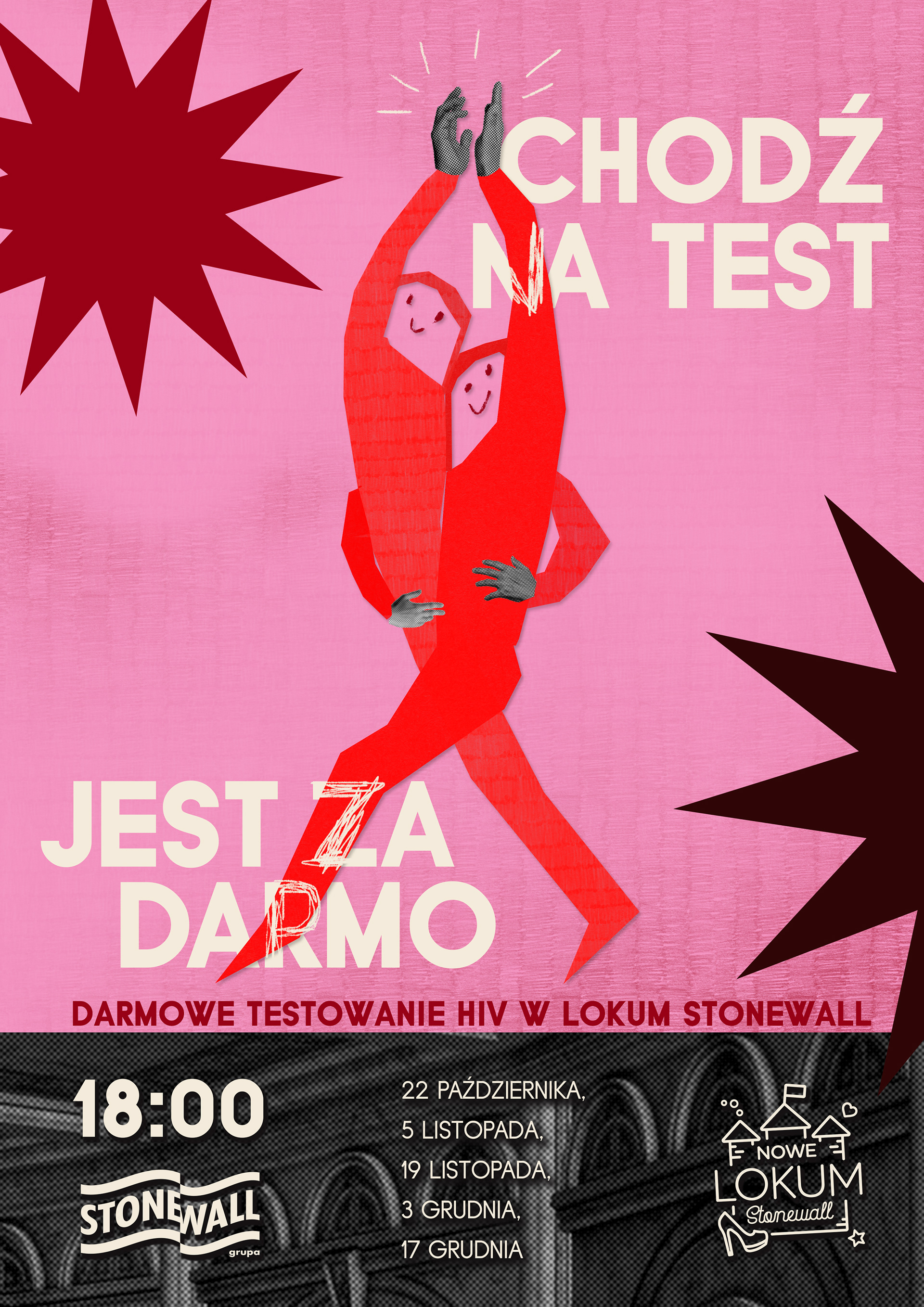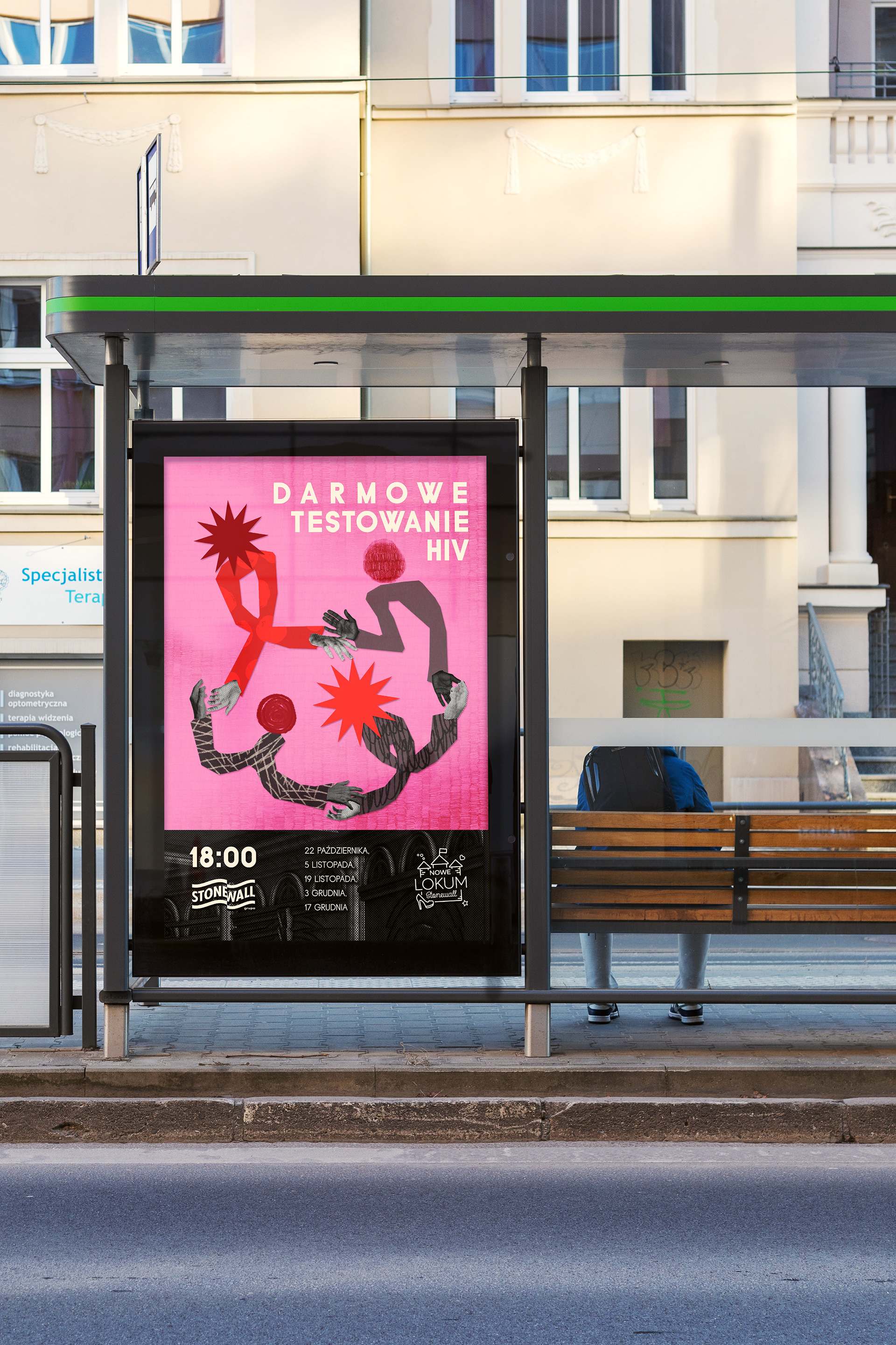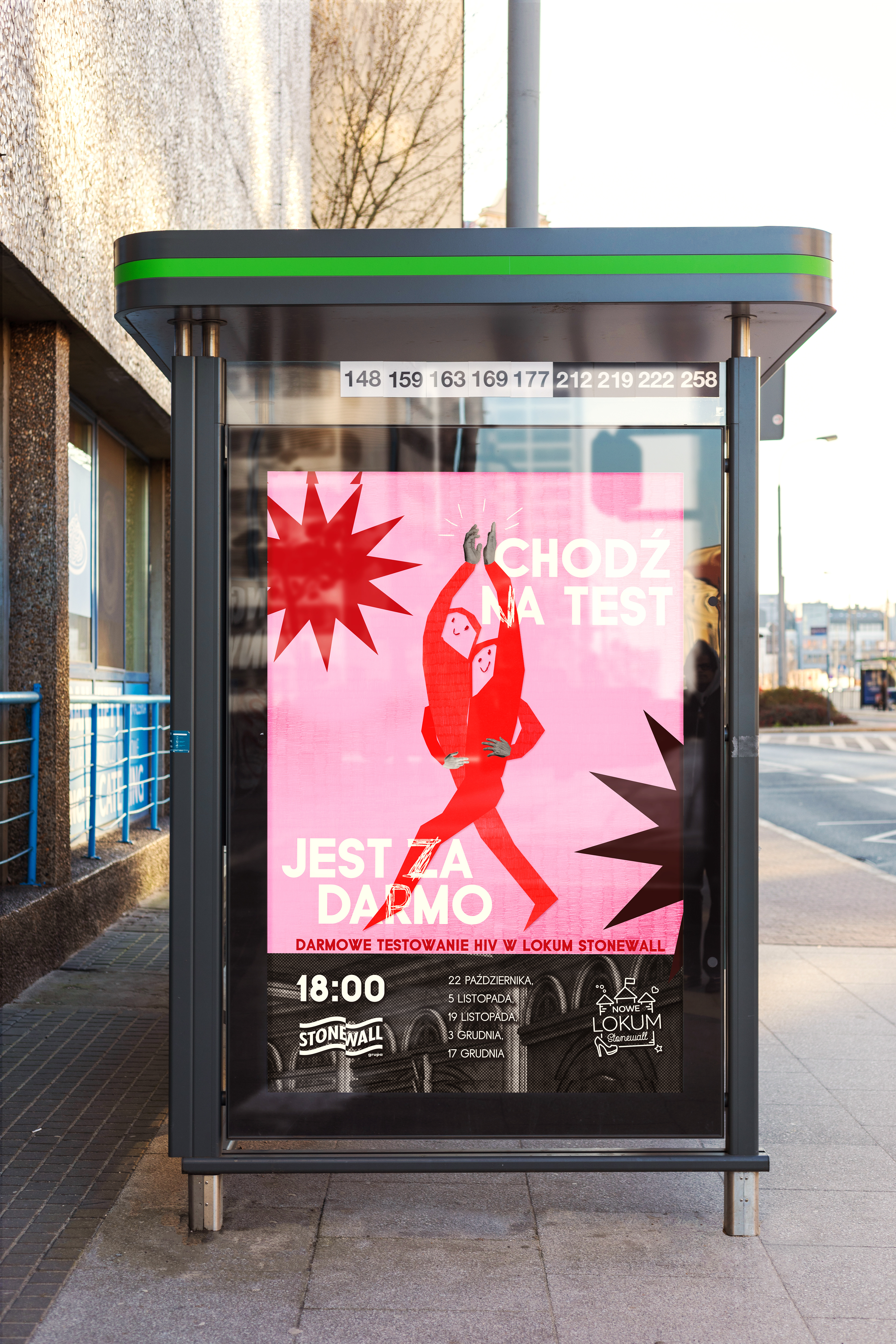 Projekt mini kampanii informacyjnej dla Lokum Stonewall, promującej darmowe testy na HIV. Opracowanie koncepcji wizualnej i projekt plakatów.