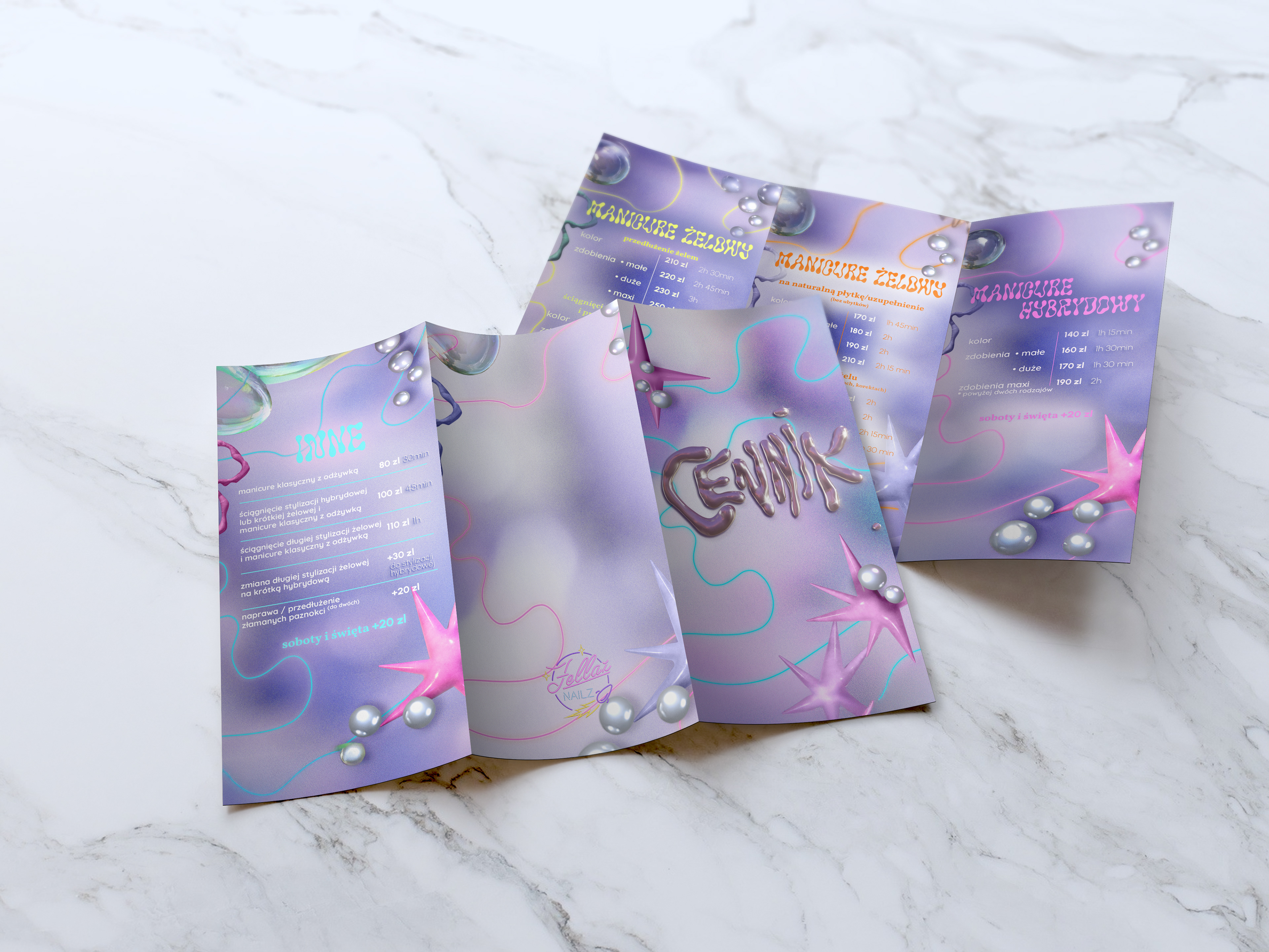 Identyfikacja wizualna i cennik salonu kosmetycznego Fellaz Nailz.